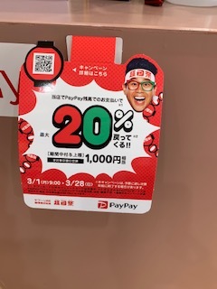 ペイペイは お得に20%バック 当店でも使えますよ~。